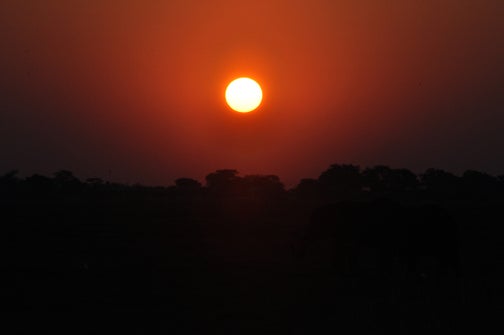Botswana time is weer een uur later dan Namibië time, kunnen we lekker van de opkomende zon genieten. Kop koffie erbij, uitzicht op de Okavanga rivier, t leven is zo slecht nog niet. We gaan op ons gemak ontbijten, we zijn de laatste, mhm kan gebeuren. Ontbijt met spek, ei en gebakken bonen, nog een bak koffie. De bootjongen komt vragen of we drankjes mee willen voor onderweg. We hebben een boot gereserveerd om van 09: 00 tot 11:00 de Okavanga af te varen. Ja, we willen drankjes, we gaan nog naar onze kamer en zullen er om 09:00 zijn. Ai, beste mensen het is al 09:10 Botswana time. Sukkels die we zijn, moeten we nog rennen ook.
