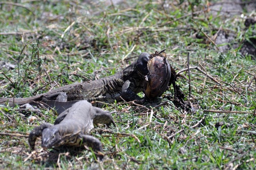De stroom in camp Kwando gaat er pas op om 07:00, dan zijn wij al aan het ontbijt. Dat is het enige nadeel dat ik kan vertellen over dit camp. Na het uitchecken, gaan we weer de weg terug naar Kongola en dan de B8 op naar Ngohma bridge, we komen langs Katima Mulilo waar we tanken. Dan aan het eind van Katima Mulilo rechts naar Nhoma Bridge, de grens over met Botswana. Aan deze kant is het wat groener, met de nadruk op wat. De grens over in Namibië gaat vlug, papiertjes invullen, stempelen, en weg. Dan de auto in, 200 meter verder weer stoppen en auto boek invullen. De jongen hier heeft honger en we geven onze salty crackers af. Dan 2 km verder rijden de brug over naar Botswana, dit is een mooi uitzicht. Aan het einde van de brug stoppen, auto laten controleren op rauw vlees en fruit, op een badje met spul tegen mond en klauwzeer stappen, de auto door een bak van dat spul rijden, eventueel nog naar de curio kijken die ze ook verkopen, en door naar het douane kantoor. Bij het douane kantoor wee papiertjes invullen, stempels en auto boek invullen. Hier moeten we ook een document kopen ( Pula 110) om op de wegen van Botswana te rijden. Tja, gelukkig hoppen we nog eens de grens over, bij de grensovergang van Dobe was geen papiertje te koop.