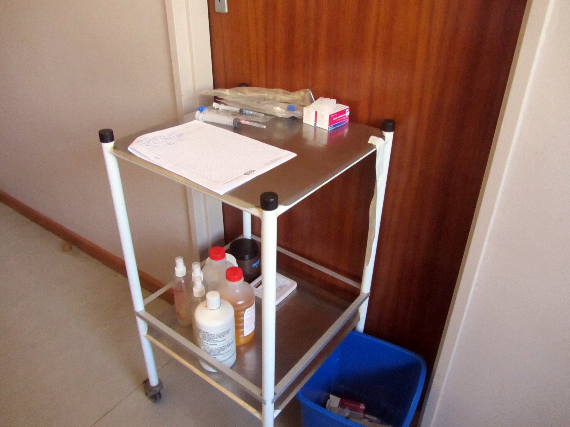 Wakker, ik heb goed geslapen, John redelijk. Als het zo blijft met de buikpijn dan gaan we naar huis! Ik stel voor dat we dan toch maar eerst terug gaan naar de kliniek. We ontbijten met wat yoghurt en thee en lopen dan een eindje naar de hide. Dan ga ik maar de vakantie dokter bellen, daar krijg ik geen dokter aan de telefoon maar een jonge dame die me verzekert naar een goed hospitaal te gaan en John nog eens goed te laten onderzoeken. Ook zij maakt een dossier aan met een nummer en geeft aan dat het mogelijk is dat hun dokters met de artsen in Namibië telefonisch overleg kunnen doen. Als er nog iets is weer bellen. Dan stuur ik Linda maar een sms’t, even vragen of haar man weet wat John aan het slikken is en wat hij ervan denkt. Hij denkt er niet slecht over en denkt dat het met de weinig info die hij heeft wel goed moet komen. Dan gaan we weer naar Medi City hospital. Nu worden we door dr. Maas geholpen die John nog een goed onderzoekt en ook nog eens de urine test. Ook bespreekt hij de lab test die binnen is. John moet van de antibiotica die hij slikt er nu 3 per dag nemen en nog 4 dagen extra, nog een maagbeschermer en nog 3 andere pillen. Dr. Maas neemt de tijd en met een geruster gevoel gaan we weg. Betalen, farmacie betalen en maandag terug komen. Als het dan goed is kunnen we verder. Nu wil ik toch eerst een espresso. Zo gezegd zo gedaan we rijden het dorp in en gaan een espresso drinken, John neemt een koffie met melk, veeeeel melk. Als ik afreken zegt het meisje dat hij niet zoveel lacht, als ik zeg dat ik al 30 jaar bij hem ben en daaraan gewend ben gelooft ze me niet. We maken er wat gein om en dan ineens kan hij toch een beetje lachen. Bij de Shoprite kopen we wat verse gember, een recept van mijn vader: gember is goed voor de maag en duizend andere dingen. Dan weer terug naar Otjibamba. John gaat nog wat slapen en ik lees de krant en een roddelblad van hier. Ben ik weer op de hoogte.